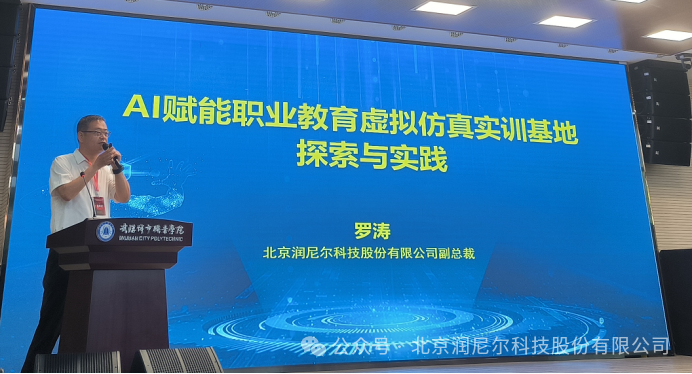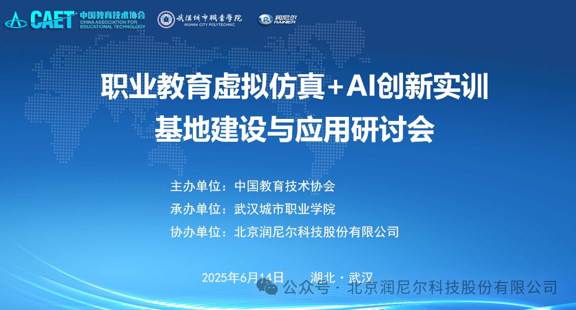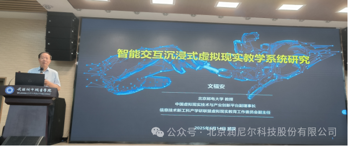 2025年6月14日至15日,由中国教育技术协会主办、武汉城市职业学院承办、北京润尼尔科技股份有限公司协办的“职业教育虚拟仿真+AI创新实训基地建设与应用研讨会”在武汉举行。来自全国行业领域专家及100多位职业院校教师代表参加会议。