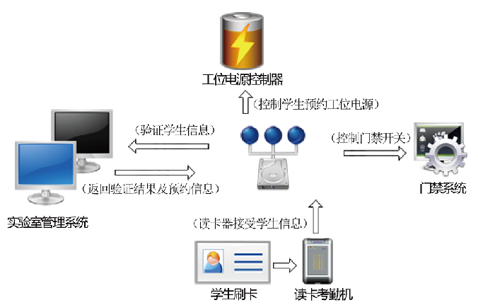 ◆学生通过IC卡或磁卡验证学生信息,进出实验室大门;