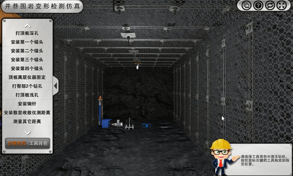 该软件是针对大学专科、本科《井巷工程》课程配套开发的可在网上开展的虚拟实验教学系统。系统模拟了巷道检测过程中用到的仪器、设备,提供与检测施工现场相似的实验环境,还原真实工程施工的流程。目前井巷工程检测实验教学存在以下局限性: