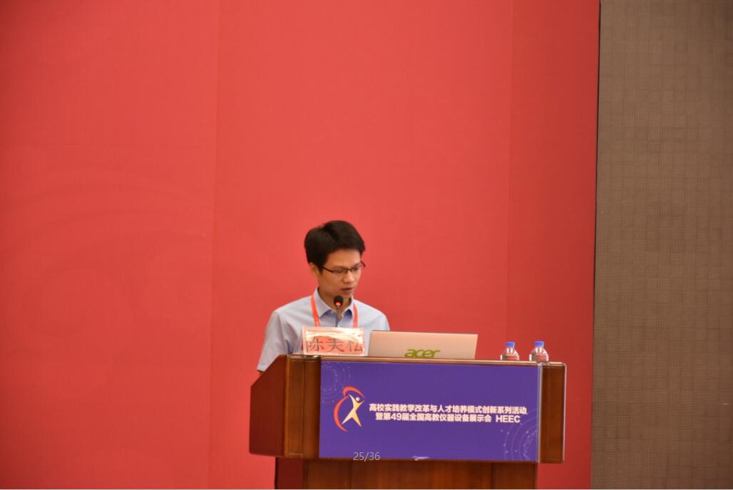润尼尔公司总经理陈美松应邀在展会的同期会议:“国家级实验教学示范中心建设成果展示交流会”上进行了题为《“互联网+实验室”助推高校实验教学改革与发展》的报告。