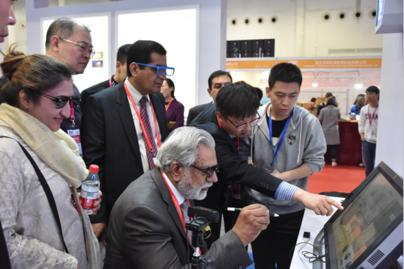 巴基斯坦高教委默罕默德-阿斯加尔先生莅临我司展区进行参观,公司创始人文福安教授亲自接待并与之进行了交流,默罕默德先生体验了我公司开发的模具认知VR实验,对于我们的虚拟仿真实验技术以及研发理念给予了高度的认可和评价。