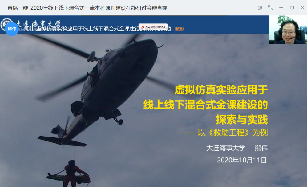 熊伟教授作了“虚拟仿真实验应用于线上线下混合式金课建设的探索与实践”的报告,报告从救助与打捞、救助与打捞专业、救助工程课程、虚拟仿真实验、线上线下混合金课五方面内容进行介绍,提出金课要为课程服务,课程为专业服务,专业为行业服务。