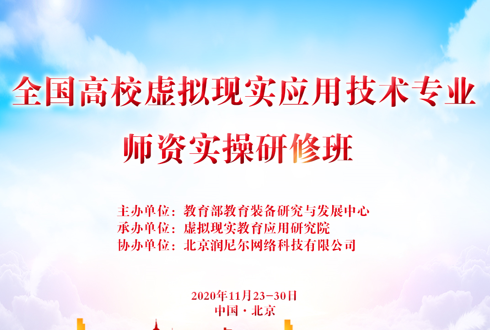 为全面贯彻落实《国务院关于加强教师队伍建设的意见》和教育部党组《开启全面建设高素质专业化创新型教师队伍新征程》、《教育部关于实施卓越教师培养计划2.0的意见》等文件精神,促进卓越教师的培养,提高各高校虚拟现实相关专业人才培养水平,进一步推动各院校虚拟现实相关专业的建设和发展,满足专业师资培训需求,由教育部教育装备研究与发展中心主办,虚拟现实教育应用研究院承办,北京润尼尔网络科技有限公司协办的“全国高校虚拟现实应用技术专业师资实操研修班”于11月23日-30日于北京举办。