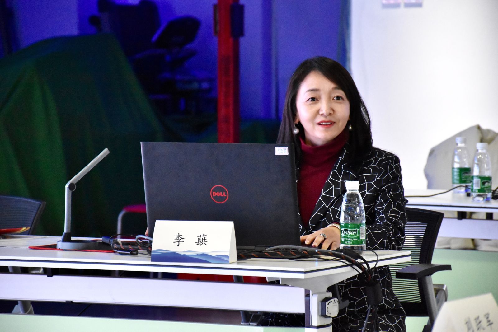 北京润尼尔网络科技有限公司专业建设部李蕻总监作了“VR相关专业一体化人才培养方案”的报告,报告从虚拟现实相关专业的实践课程资源、教师培训、实验实训室建设、大赛技术支持、校企项目合作等整体教学内容介绍。