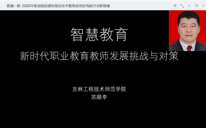 吉林工程技术师范学院继续教育学院院长苏顺亭教授作了“智慧教育新时代职业教育教师发展挑战与对策”的报告,报告从21世纪学习框架入手,引导学习者从生活与职业技能、学习与创新技能、信息、媒介与技术技能三个领域,掌握新时代职业院校教师的专业发展目标。提出在智慧教育视域下,适应新时代对职业院校教师的要求,提出应对新要求、新挑战的新对策。