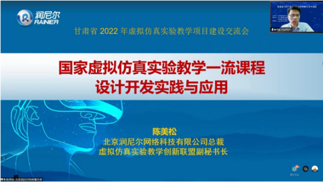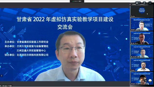 为贯彻落实《教育部关于一流本科课程建设的实施意见》(教高〔2019〕8号)文件精神,推进信息技术与实验教学的深度融合,加强实验教学优质资源建设与应用,促进实验教学资源开放共享,提高实验教学质量和实践育人水平,进一步推动实验教学改革与创新,由甘肃省高校实验室工作研究会主办,兰州大学实验室与设备管理处和兰州交通大学实验管理中心承办,北京润尼尔网络科技有限公司协办的“甘肃省 2022 年虚拟仿真实验教学项目建设交流会”于7月19日以在线方式顺利举行。全国共有167所学校982名老师参会,其中甘肃省40余所高校的825名老师参会,全国累计6789人次观看直播。