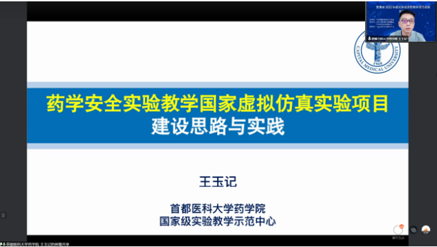 首都医科大学化学生物学与药学院院长王玉记教授作了“‘药学安全实验教学国家虚拟仿真实验教学项目’建设思路与实践”的报告。报告以首都医科大学药学安全实验教学国家虚拟仿真实验教学项目为例,介绍了药学安全虚拟仿真实验建设的整个设计阶段以及设计思考和优势,以虚拟仿真为切入点,实现了实验教学模式的多样化及其实用性,在养成学生科学严谨的实验态度和提升学生就业率方面具有十分重要的意义。
