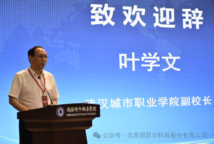 武汉城市职业学副校长叶学文代表承办方致欢迎辞,表达了学院在推动教育数字化转型升级方面的坚定决心。他指出,在数字经济蓬勃发展的新时代,作为国家"双高计划"建设单位,武汉城市职业学院始终坚持"技术引领、产教融合"的办学理念,我校建成了一个国家级教师教育示范性虚拟仿真实训基地,在创新人才培养模式方面取得了显著成效。