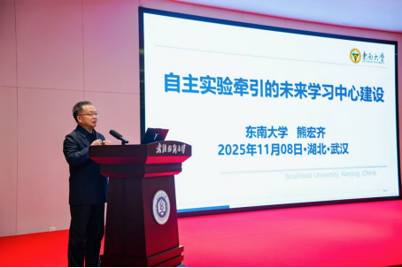 在特邀专家报告中,东南大学熊宏齐教授做《自主实验牵引的未来学习中心建设》专题报告。熊教授以新质生产力与新质人才的培养为背景,提出以“教育链+科技链+人才链”一体化谋篇布局构建实验教学体系,提出在实验教学中“虚拟仿真+AI”无所不能,并对AI技术赋能下实验教学模式的改革提出了建设性的指导建议,为实验教学的改革之路提供了指明灯。