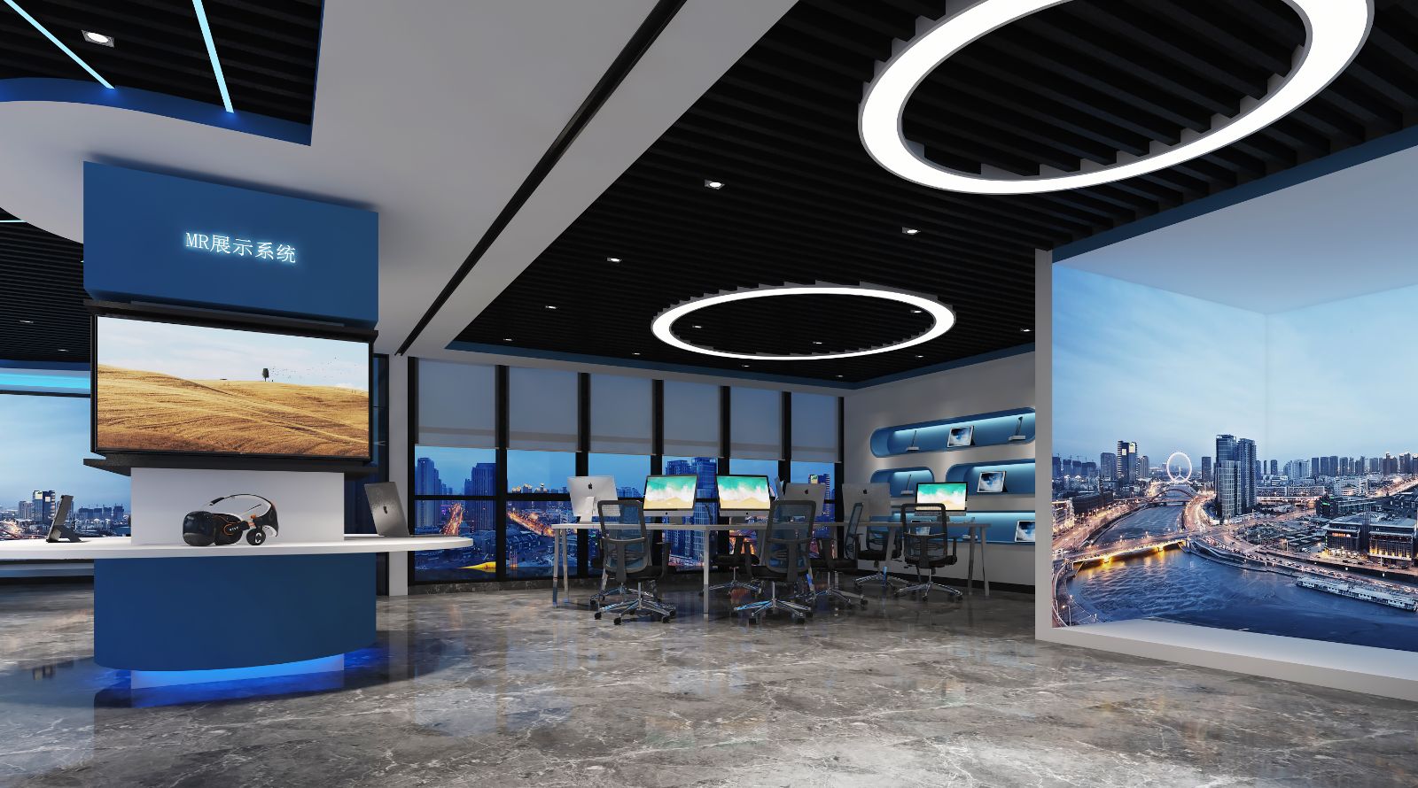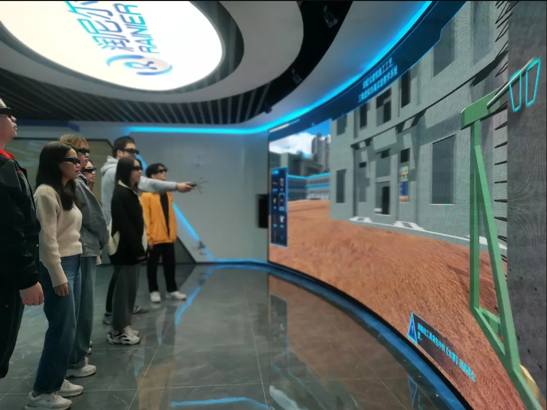 该中心主要由LED大屏立体显示系统、CAVE沉浸式立体显示系统、桌面VR交互系统、沉浸式VR交互系统、AR互动系统、MR互动系统、体感式互动系统等七大部分构成。自该中心建成后,已成功接待多所院校,并已逐渐成为广大院校参观体验、经验参考、交流互动的重要平台!