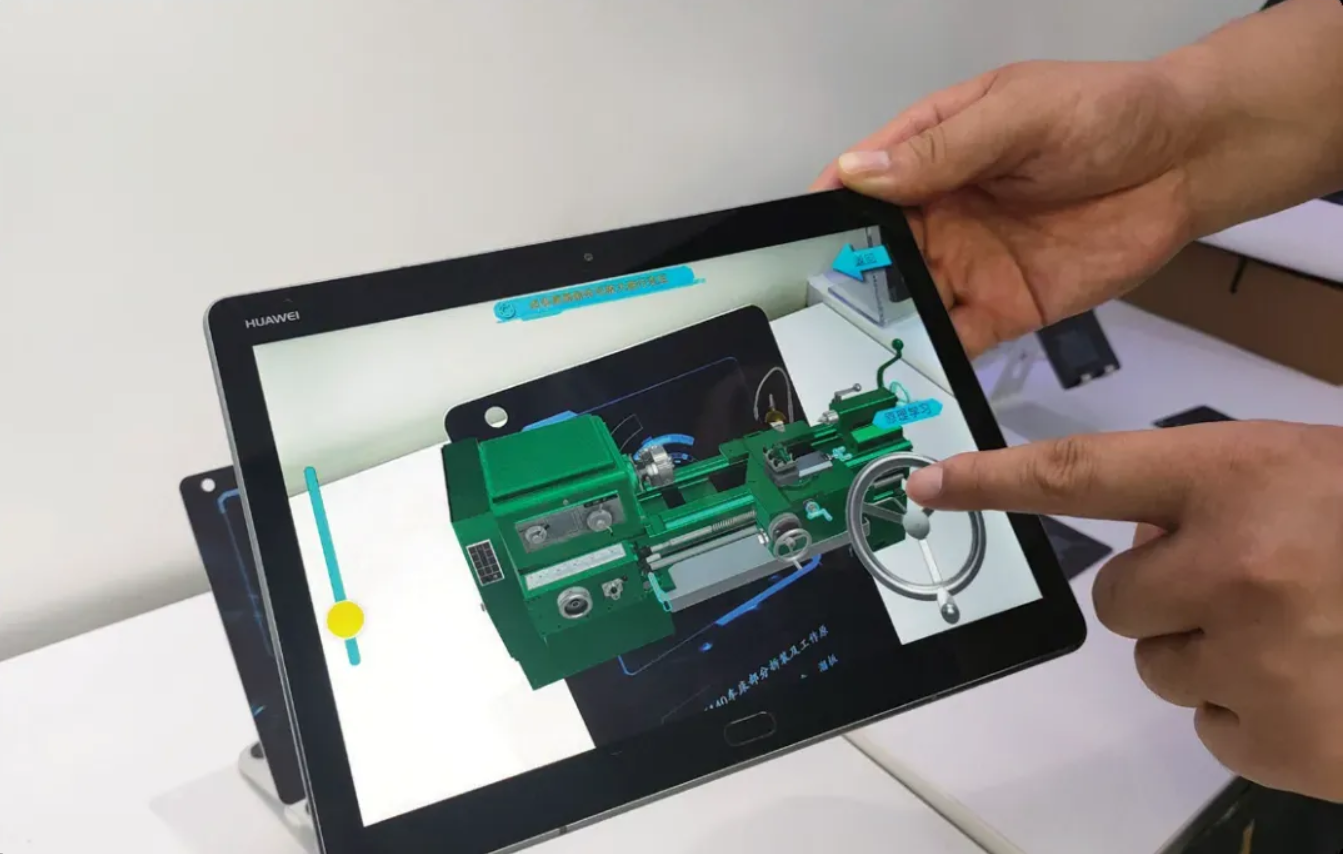 借助带有摄像头的终端显示设备,以AR技术为基础的互动教学系统能以更方便快捷的方式构建虚拟场景,仅仅需要通过手机、iPad等便携式电子设备,虚拟模型就可以呈现在眼前,并可以进行简单交互。
