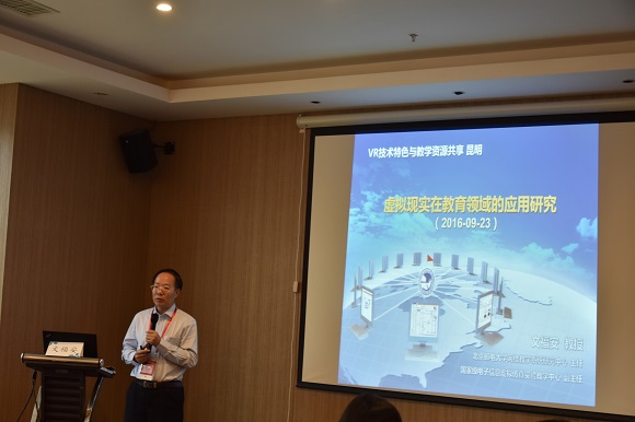 北京邮电大学网络教学系统研究中心主任文福安教授,在经管/文综/艺术学科分会上以“虚拟现实在教育领域的应用研究”为主题做了报告。
