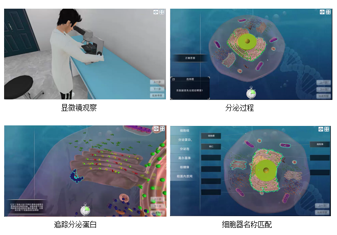 本实验有效解决了实际教学中无法具象化展示细胞微观结构的问题,可以作为实物实验的补充和替代,在虚拟实验环境中,学生任意视角观察细胞的结构,学生按照实验操作提示选择操作,播放实验操作动画。通过开展该实验,让学生了解细胞分泌蛋白的过程,以及实验中涉及不同细胞器的名称,掌握荧光术标记追踪分泌蛋白的分泌过程。