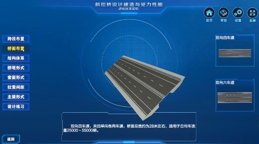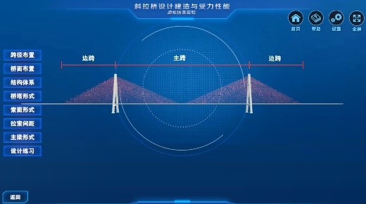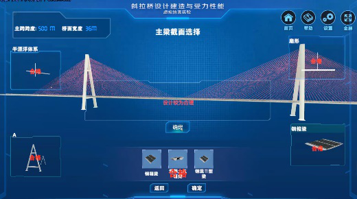 大型斜拉桥设计、建造与受力性能虚拟仿真实验系统 |