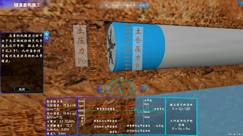 2018年,我公司为河北大学建筑工程学院量身定制开发了盾构隧道结构设计与施工综合仿真实验,该实验结合盾构隧道设计和施工的实际案例,通过三维仿真技术,还原了盾构隧道洞身结构设计的过程、施工过程、盾构机操作及灾害预防措施,用虚拟仿真的方式直观地呈现给学生,使他们真正学习到地下工程的设计和施工,掌握设计和施工中可能遇到的问题,同时通过虚拟仿真可实现学生交互式设计参数,包括土体厚度、地下水位埋深、隧道直径大小与隧道埋深等参数,设计关键土体和结构参数;根据设计结构和施工实时监测曲线,观察并分析产生灾害的原因。