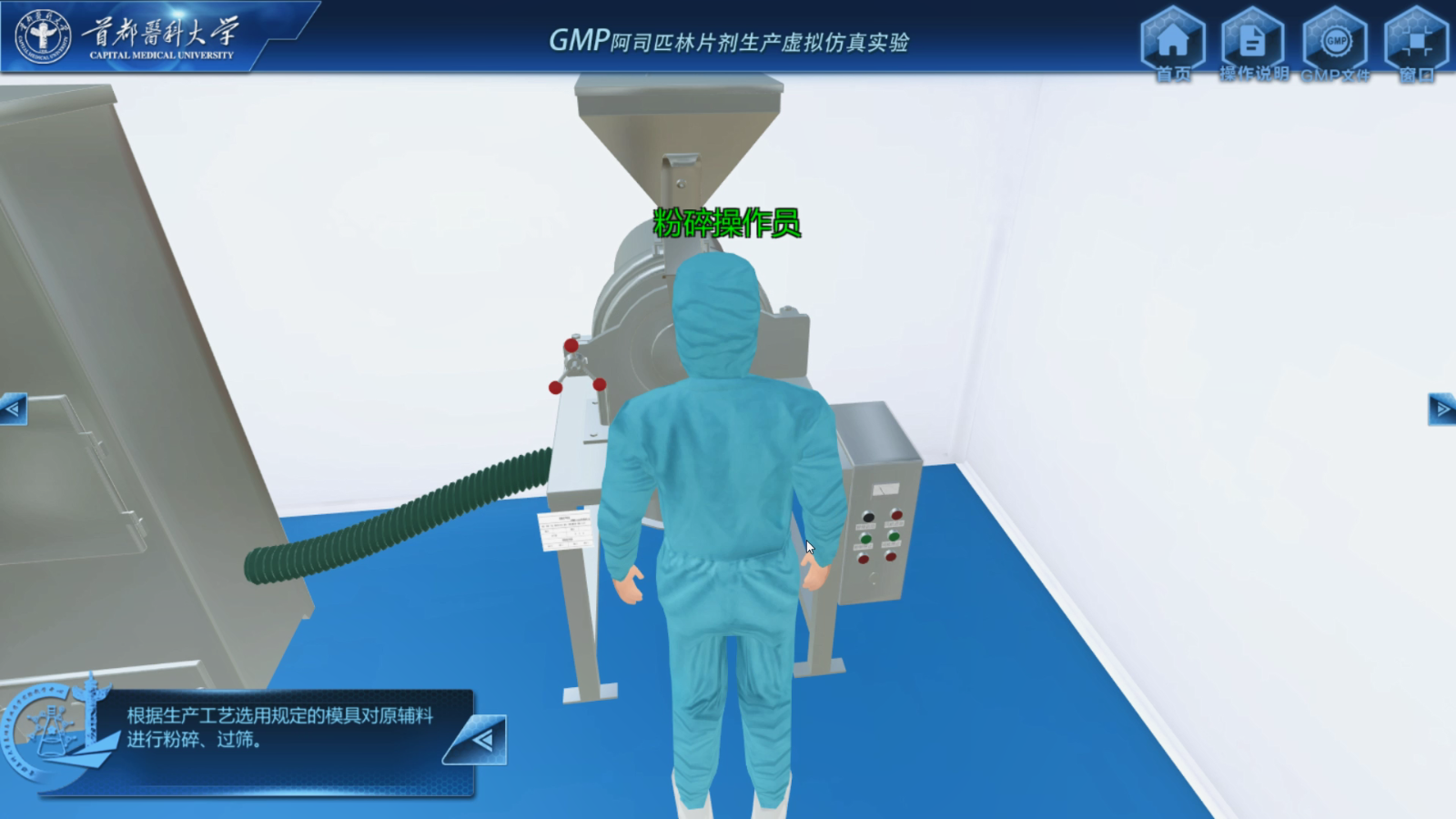 GMP片剂生产粉碎过筛岗位虚拟仿真实验 |