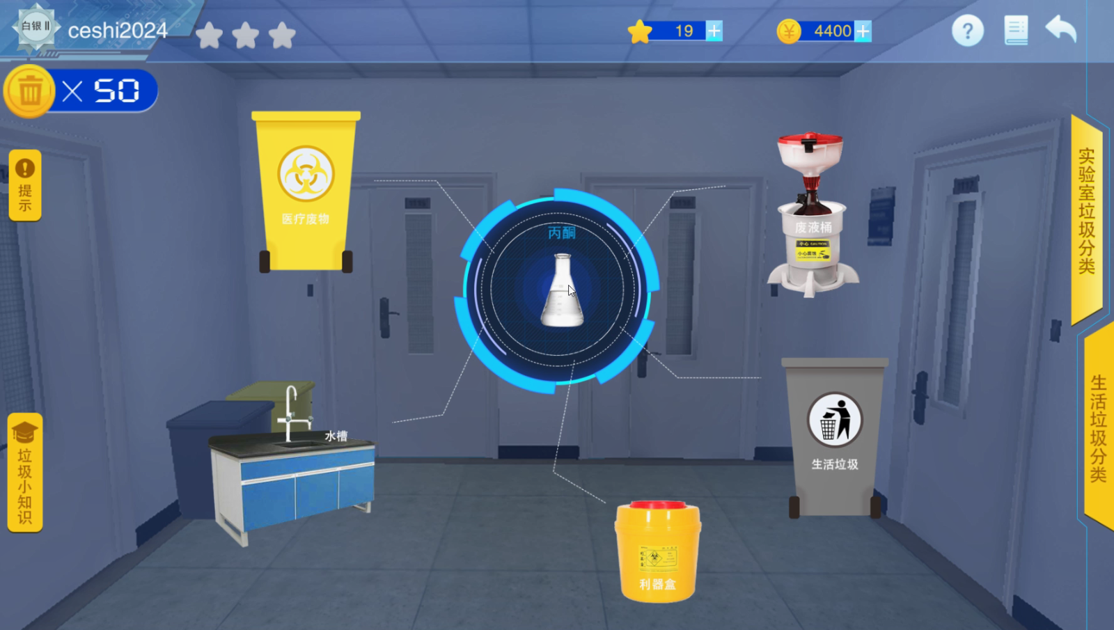 实验室安全系列虚拟仿真实验(APP)内承载专业课程资源,可进行视频课程学习,虚拟实验采用三维人物及场景模型、人物动画等方式全程模拟实验室安全培训课程,通过进行不同实验模块操作,使用户享受虚拟操作的乐趣。实验中包括实验前准备、安全灭火、火灾逃生、钢瓶的使用、高压蒸汽灭菌锅的使用、生物安全柜的使用、腐蚀试剂的应急处理、有机中毒的应急处理、无机中毒的应急处理、垃圾分类等10个实验。